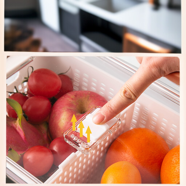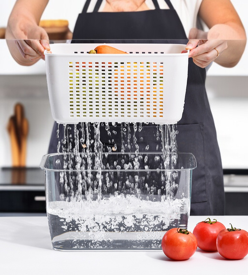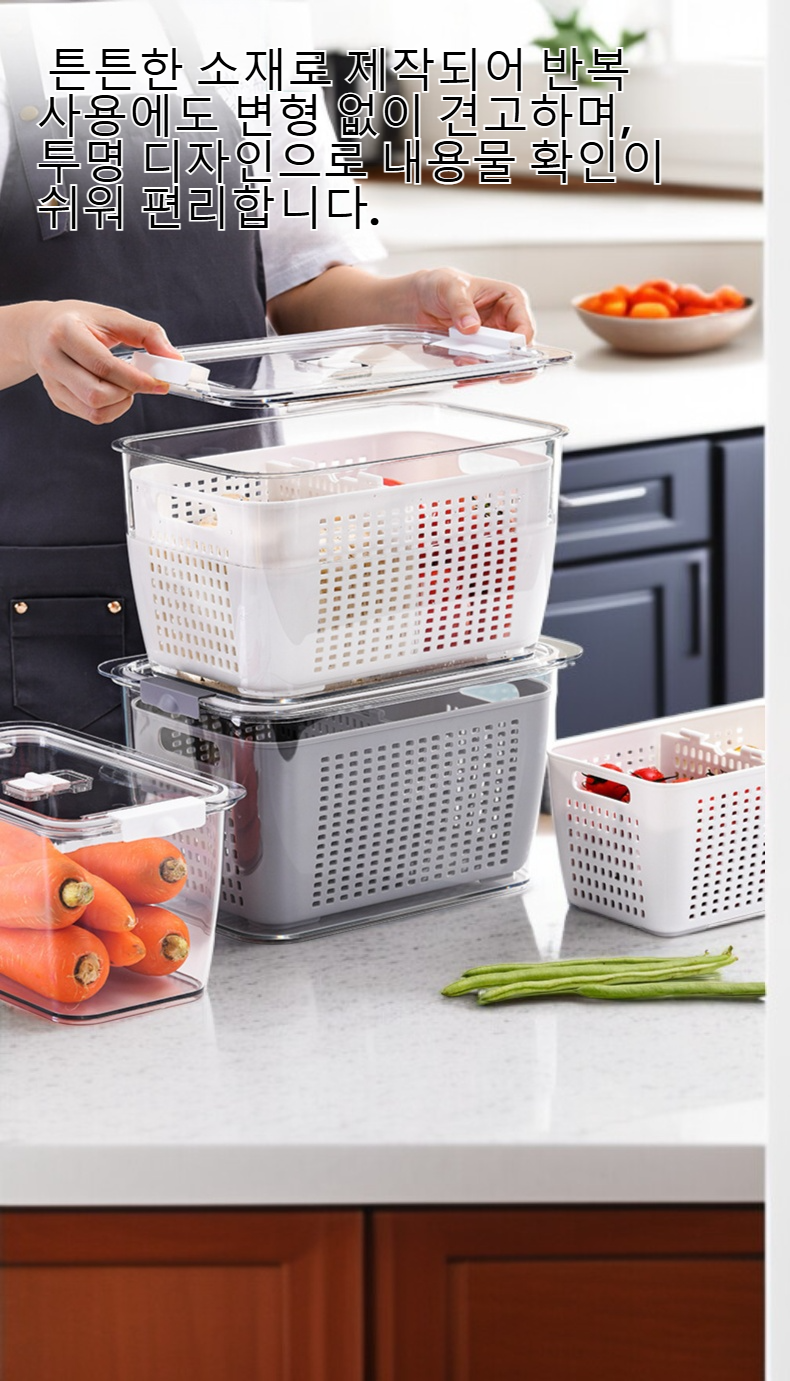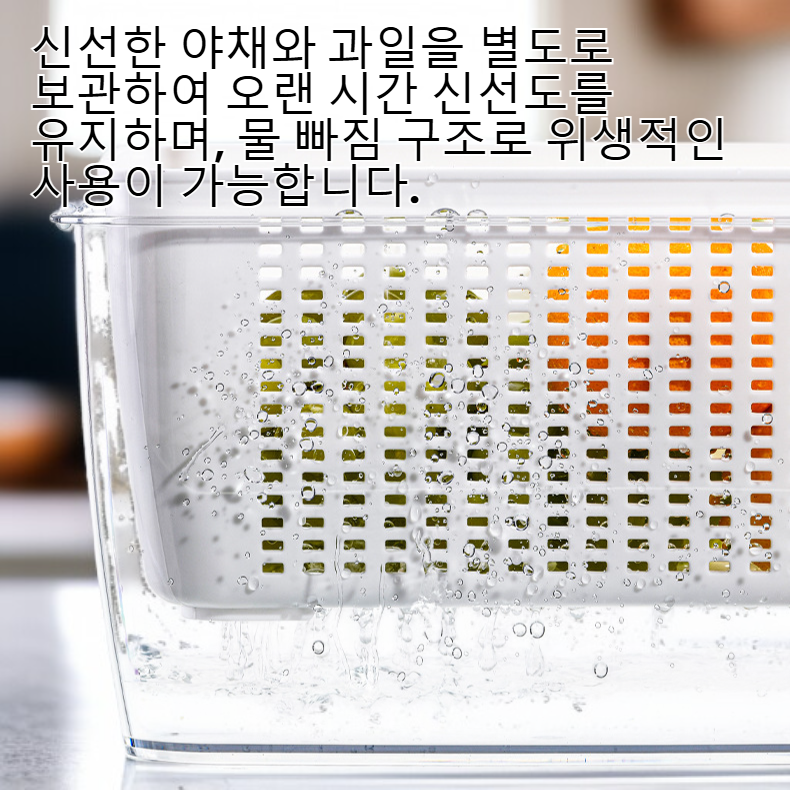 ● 신선한 야채와 과일을 별도로 보관하여 오랜 시간 신선도를 유지하며, 물 빠짐 구조로 위생적인 사용이 가능합니다.