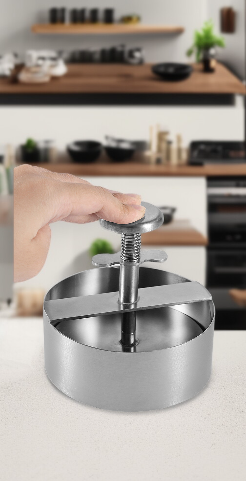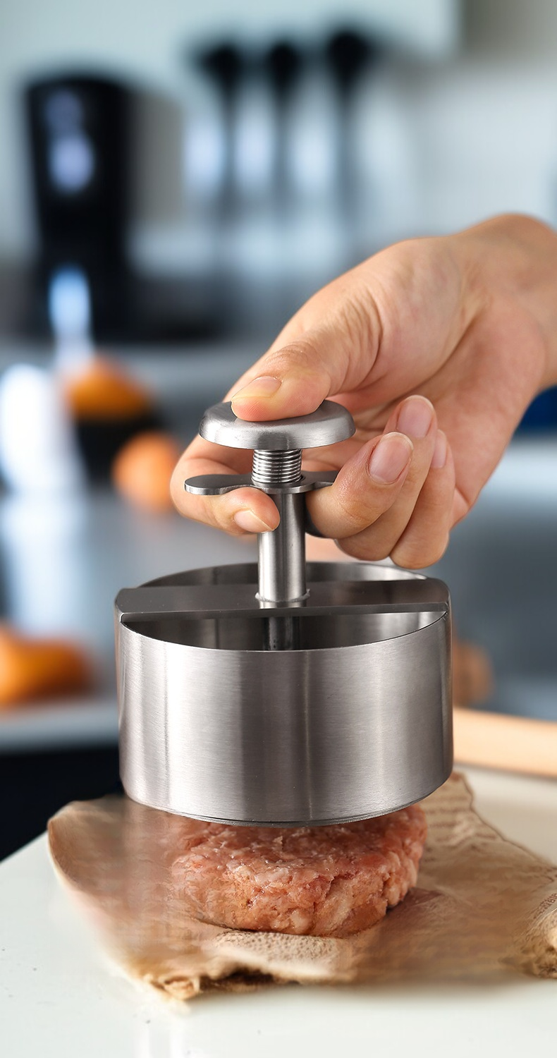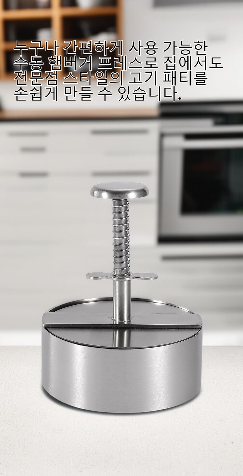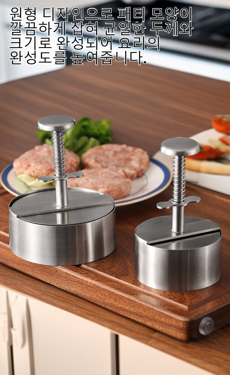 ● 304 스테인리스 재질로 위생적이고 녹슬지 않아 오랫동안 안전하게 사용할 수 있습니다. ● 누구나 간편하게 사용 가능한 수동 햄버거 프레스로 집에서도 전문점 스타일의 고기 패티를 손쉽게 만들 수 있습니다. ● 원형 디자인으로 패티 모양이 깔끔하게 잡혀 균일한 두께와 크기로 완성되어 요리의 완성도를 높여줍니다. ● 세척이 간편하고 내구성이 뛰어나 주방용품으로 오랜 시간 활용할 수 있습니다. ● 햄버거 패티뿐만 아니라 다양한 고기 요리에도 활용 가능해 실용성이 뛰어난 제품입니다.