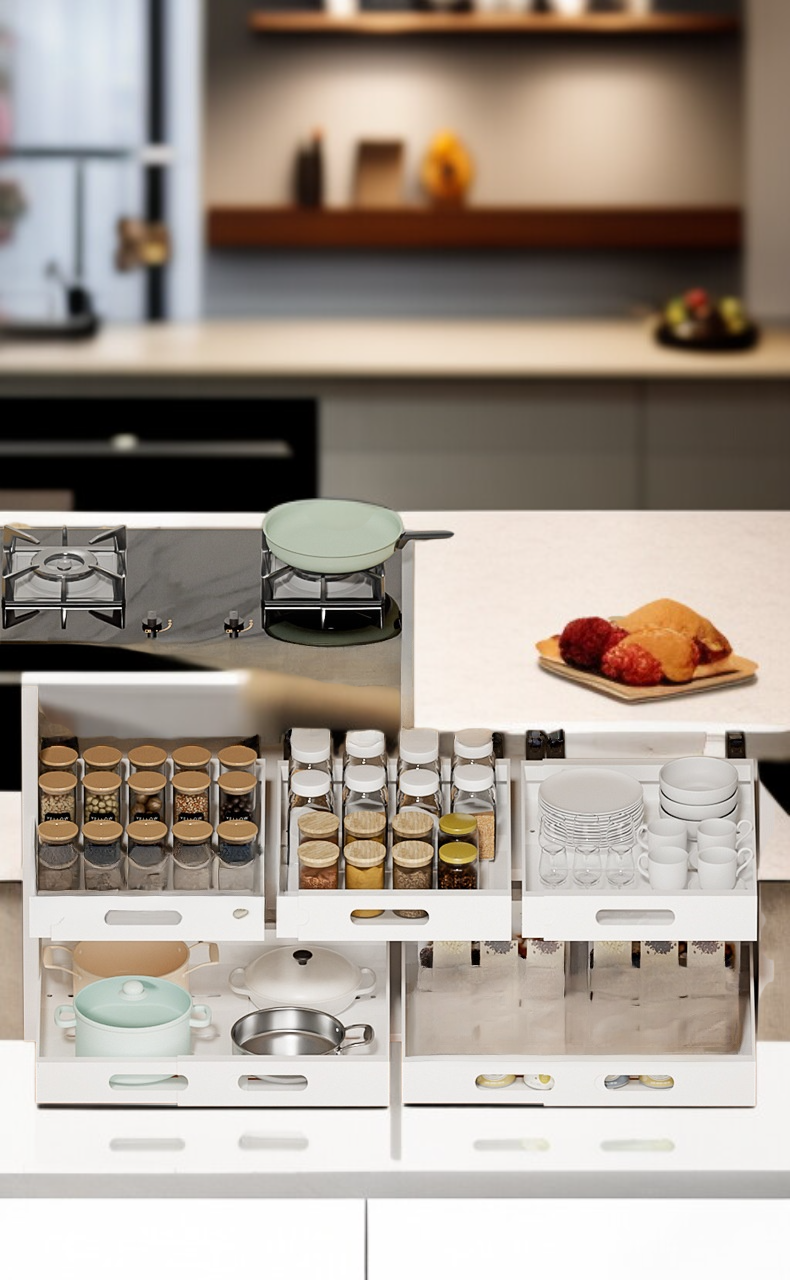 ● 프리미엄 소재로 제작되어 내구성이 뛰어나고, 무거운 주방용품도 안전하게 수납할 수 있습니다. ● 확장형 디자인으로 다양한 크기의 서랍과 캐비닛에 맞춰 자유롭게 길이 조절이 가능해 공간 활용도가 높습니다. ● 설치가 간편하여 별도의 공구 없이 누구나 쉽게 조립할 수 있으며, 주방 정리가 한층 더 쉬워집니다. ● 미끄럼 방지 패드가 부착되어 있어 선반이 흔들리거나 미끄러지지 않아 안전하게 사용할 수 있습니다. ● 깔끔하고 세련된 디자인으로 어떤 주방 인테리어에도 잘 어울려 공간을 더욱 고급스럽게 연출합니다.